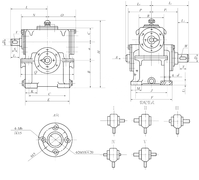 WS150-WS360型圆柱蜗杆减速器(150~360)安装尺寸