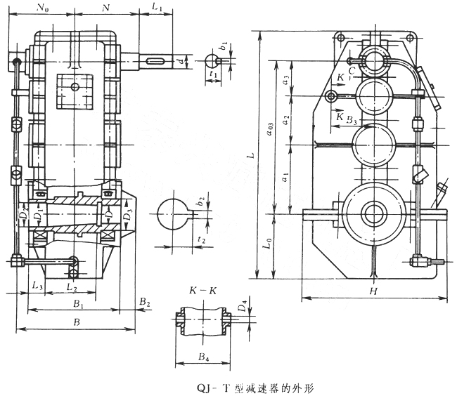 QJ-T140、QJ-T170、QJ-T200、QJ-T236、QJ-T280、QJ-T335、QJ-T400、型减速机的外形尺寸及安装尺寸(JB/T8905.4-1999)