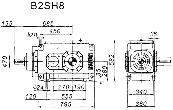 7.H、B系列产品有3~26型规格,减速传动级数有1~4级,速比1.25~450;和我厂R、K、S系列组合得到更大的速比。