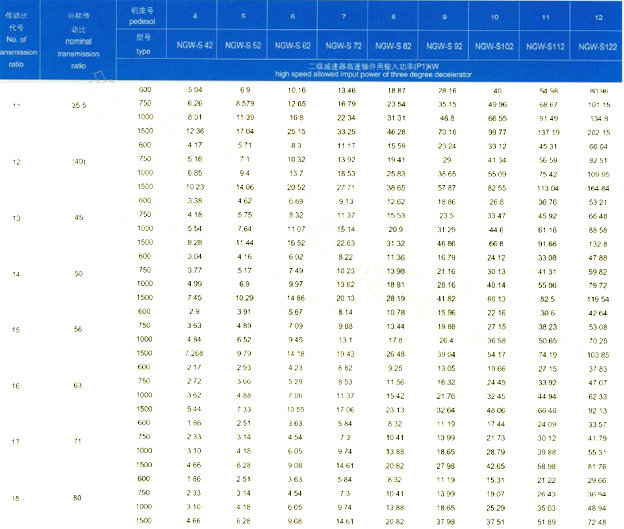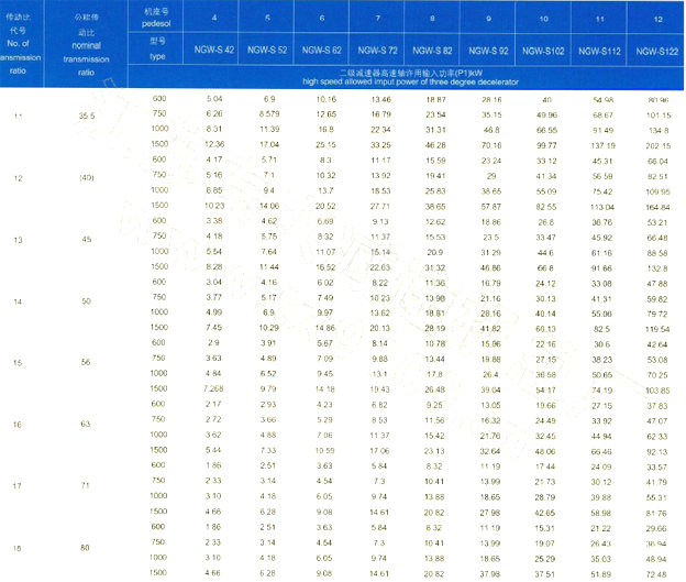 系列代号:由行星减速器NGW和组合级弧齿锥齿(伞齿)轮的(伞)字汉语拼音字头S组成, “NGW-S”代表系列代号。