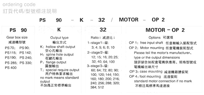 PS/OP2 任意电机输入型式减速机外形安装尺寸