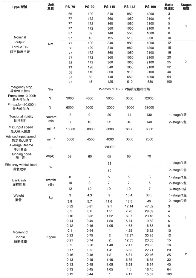 | PS 70-190 SERIES PRECISION PLANETARY GEAR BOXES TECHNICAL DATA |