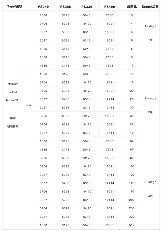 PS 240-400 HEAVY TORQUE PLANETARY GEAR BOXES TECHNICAL DATA