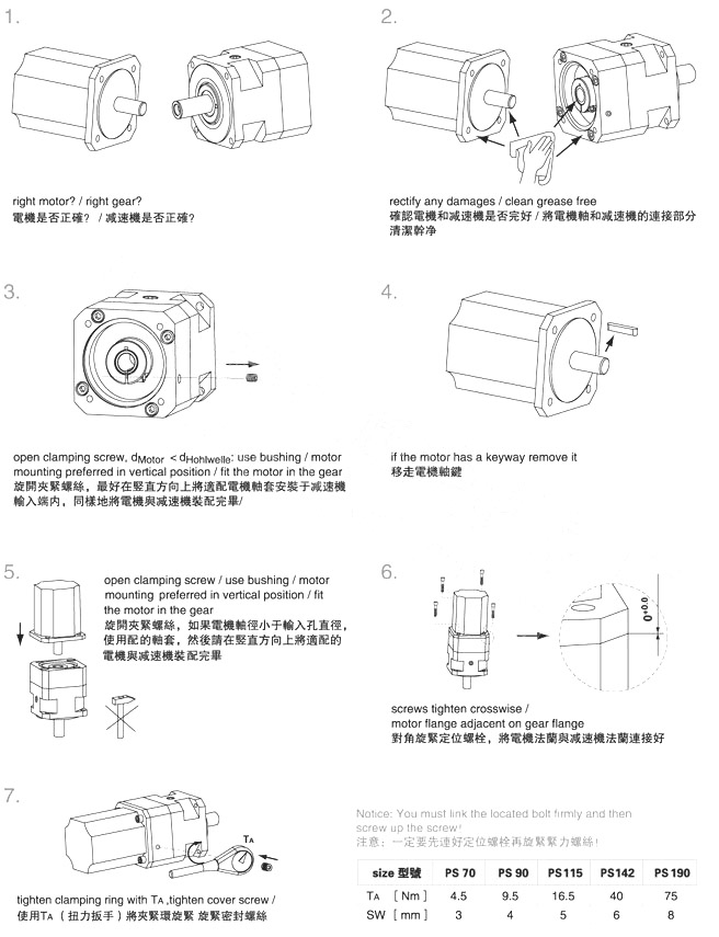 PS SERIES PRECISION PLANETARY GEAR BOXES MOUNTING INSTRUCTION