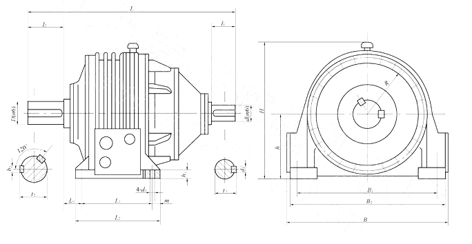 NGW型行星齿轮减速器包括单级、两级、三级减速的十二个系列和八个派生系列的渐开线直齿圆柱齿轮行星减速器。主要用于冶金、矿山、运输、建材、能源、交通等。其工作条件如下:规格为200~800,高速轴转速不大于1500r/min;规格为900~1120,高速轴转速不大于1000r/min;规格为1250~1600,高速轴转速不大于750r/min;规格为1800~2000,高速轴转速不大于600r/min;齿轮圆周速度不大于15~20m/s;工作环境温度应为-40~+45℃;可正反两向运转。