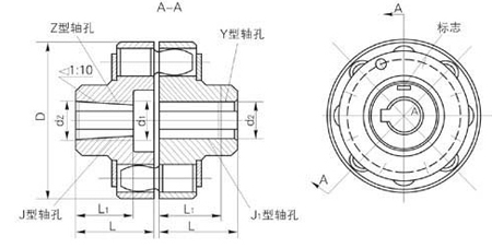 HL6弹性柱销联轴器主动端:Y型轴孔,A型键槽,d1=65mm,L=142mm