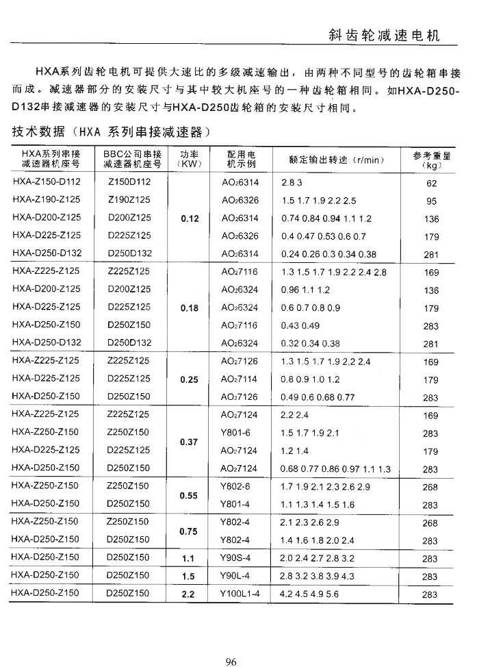 1,HXA系列斜齿轮减速机是本公公司近年开发的产品,其安装尺寸与德国BBC公司的Z系列和D系列相同。